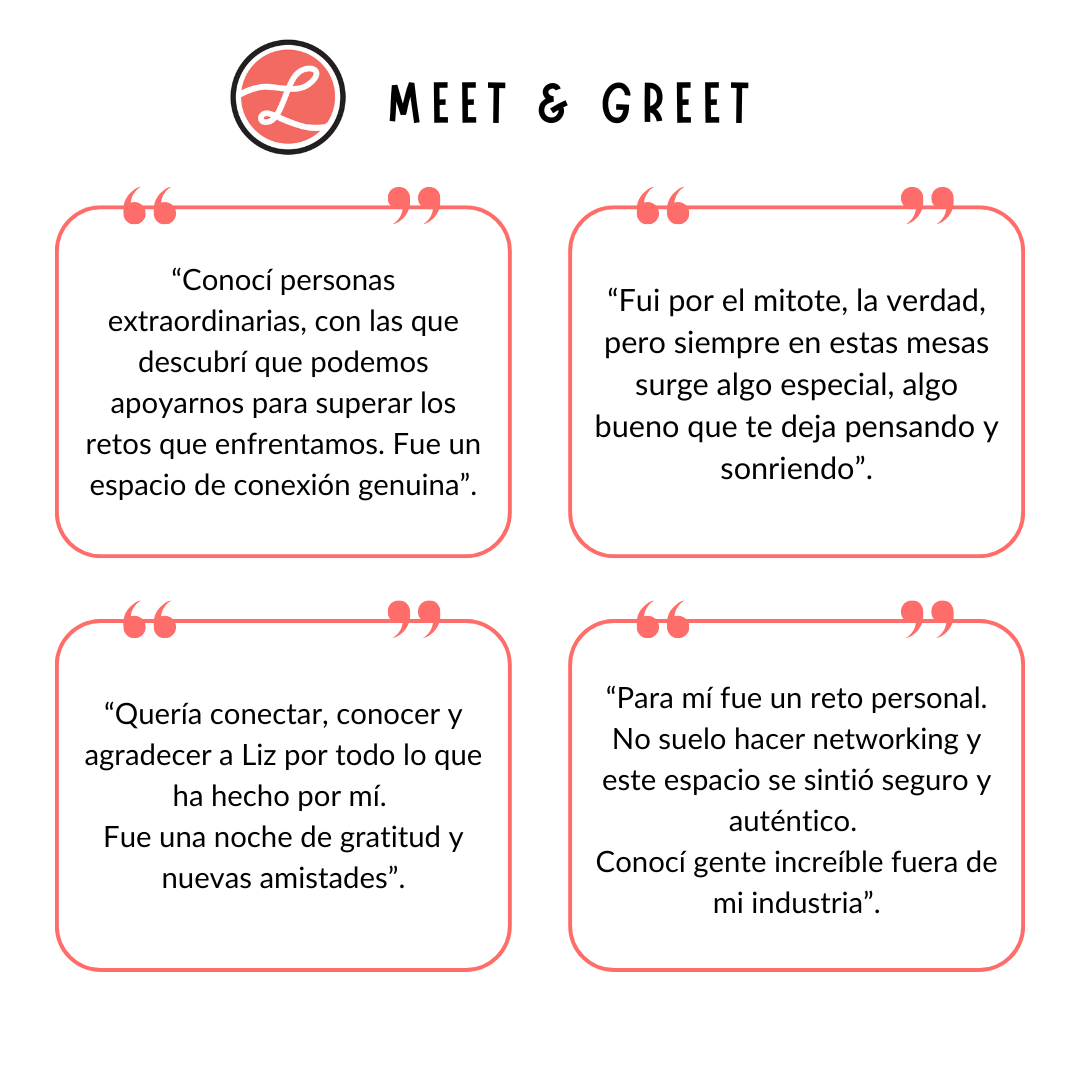 *La Power Table VIP ofrece la posibilidad de que tengamos una comida después del Meet&Greet donde platiquemos sobre temas de mentalidad, autoconocimiento, liderazgo efectivo y profundicemos el networking.